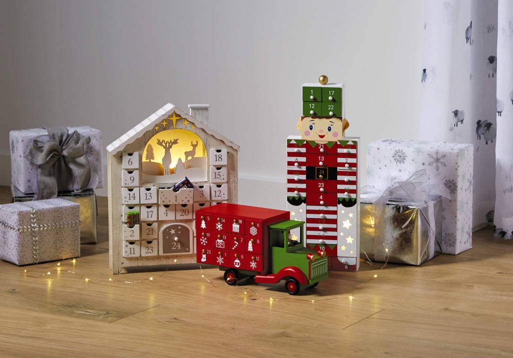 Aldi’s Wooden Advent calendar to add your own gifts to, £9.95, aldi.co.uk. Available in a choice of LED Wooden House, LED Elf and 3D Train designs. This is the perfect calendar to add your own personalised presents to!