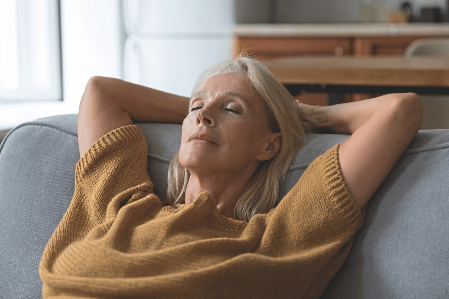 ’Don’t ‘’try’’ to sleep as you can’t force sleep, but instead focus on what you can hear, smell and feel, and take the opportunity to breathe deeply. If you nod off great, but if not, you can still get an energy boost from this mindful activity,’ explains Kathryn.