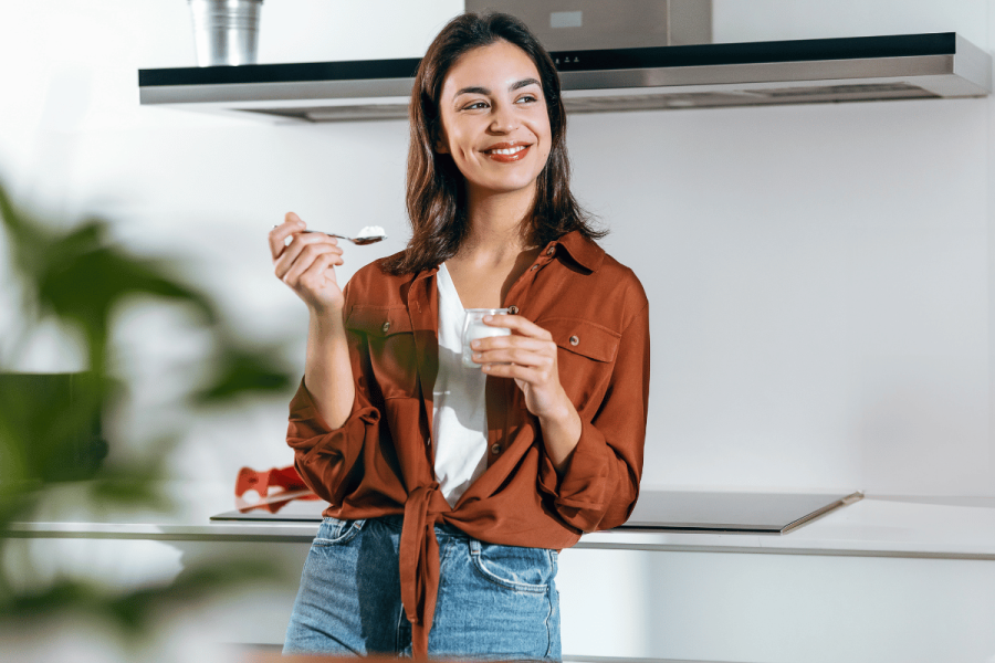 – Dairy foods, such as full-fat Greek yoghurt or cottage cheese are already fermented, which makes them easier to digest while providing you with a good source of protein to keep you feeling satiated until your next meal.