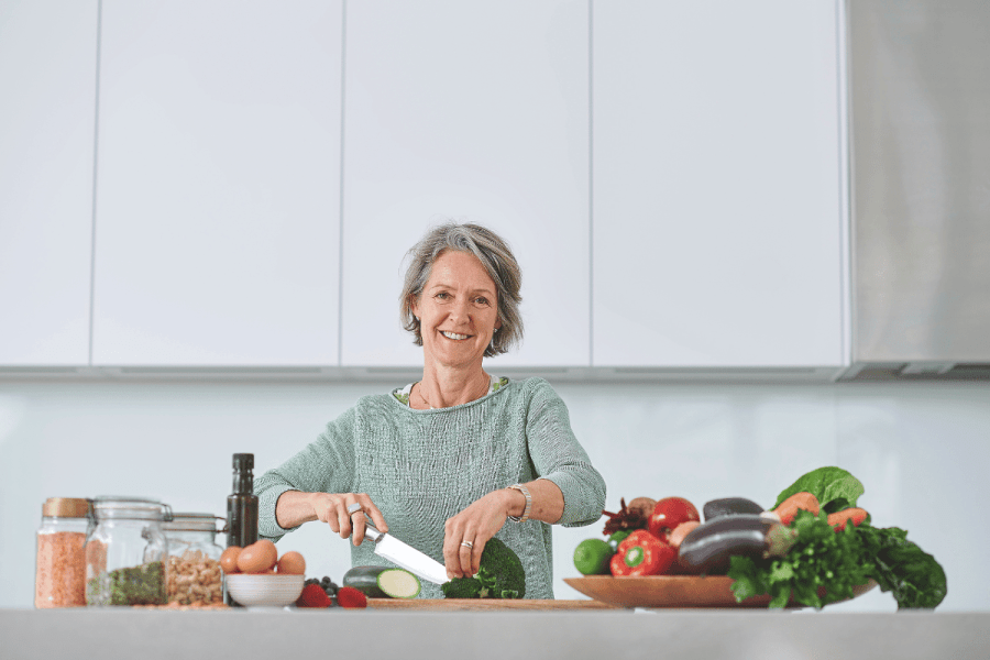 During midlife, your body won’t be processing protein the way it used to, which means you actually need to eat more of it to get the same benefits. Protein is your powerhouse and keeps you full, helps curb cravings, support muscle repair, and keep your bones strong. During menopause, you naturally start to lose muscle and bone faster, so getting enough protein can help slow that down and keep you feeling stronger, for longer.