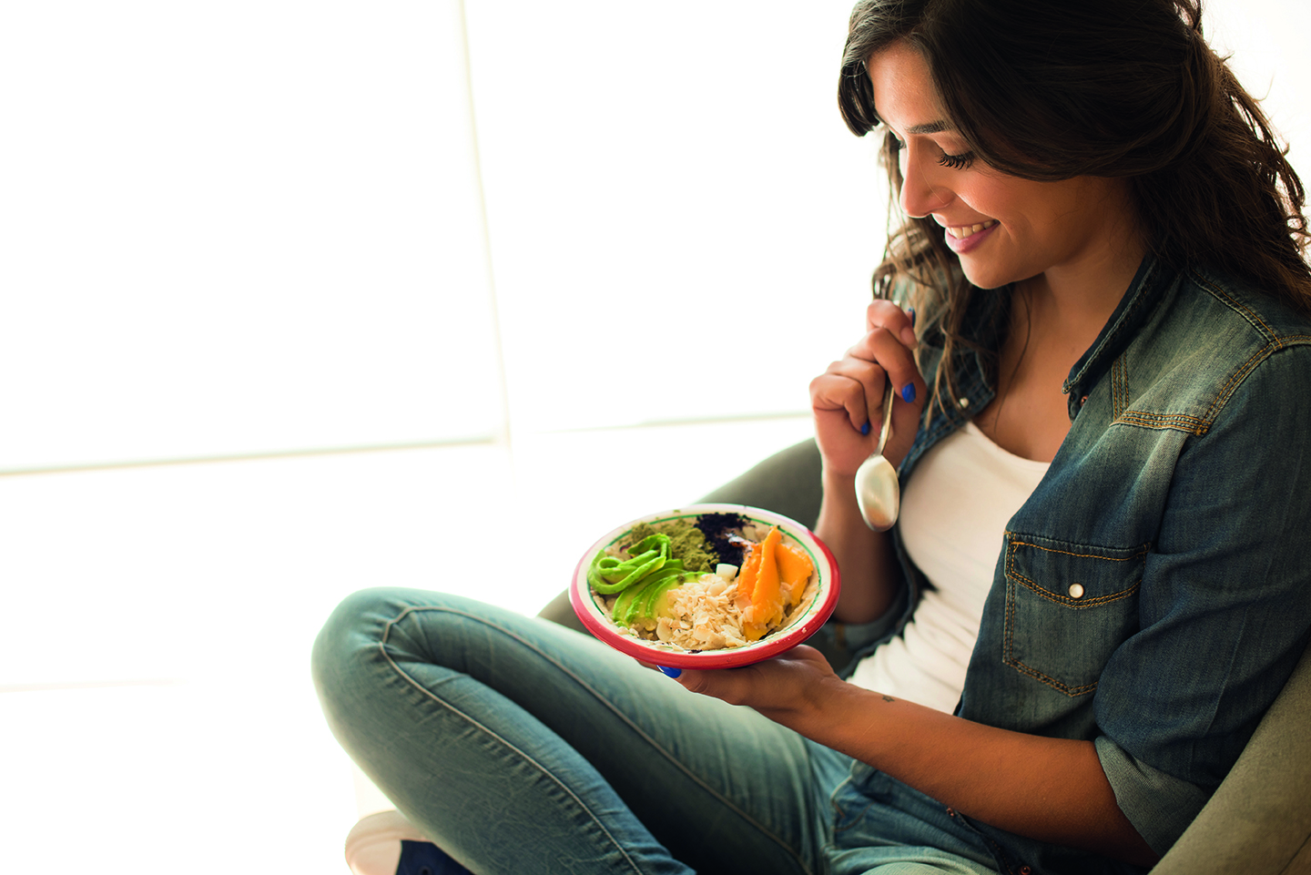 Again, this is not about changing anything, it’s just bringing a bit of awareness into what’s going on. - FIND: Now you know the feeling and how the snack is feeding that feeling, you can find another behaviour to feed the feeling – one that isn’t food-based. It may be you need a cuddle with your husband, or to stroke your pet because you’re feeling a bit lonely; maybe you need to phone your mum or one of your best mates; maybe you need to run a bath and nourish yourself for 20 minute; maybe you put on a feel-good tune and dance around your kitchen. Or perhaps it’s about moving to a different room – it could be that you associate sitting on the sofa with snacks, so maybe sit in a different room – anything to break that cycle.